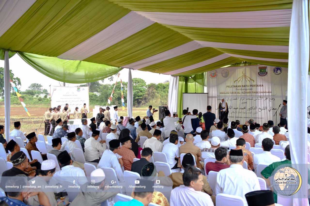 ‏معالي الأمين العام واضعاً حجر أساس المركز الحضاري ومسجده الجامع في إندونيسيا بحضور عدد من كبار الشخصيات، في نقلةٍ نوعية نحو التواصل الدولي