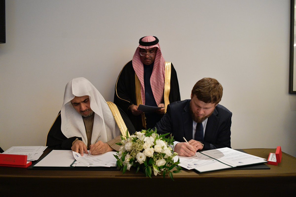 معالي الشيخ د. محمد العيسى يوقع في موسكو اتفاقية تعاون بين رابطة العالم الإسلامي والصندوق الحكومي لدعم الثقافة والعلوم والتعليم في روسيا لتعزيز مفاهيم الاعتدال والتسامح والاندماج الوطني، ويُجْرِي مباحثات مع قيادات الصندوق (تعتبر الاتفاقية الأولى من نوعها في روسيا الاتحادية)