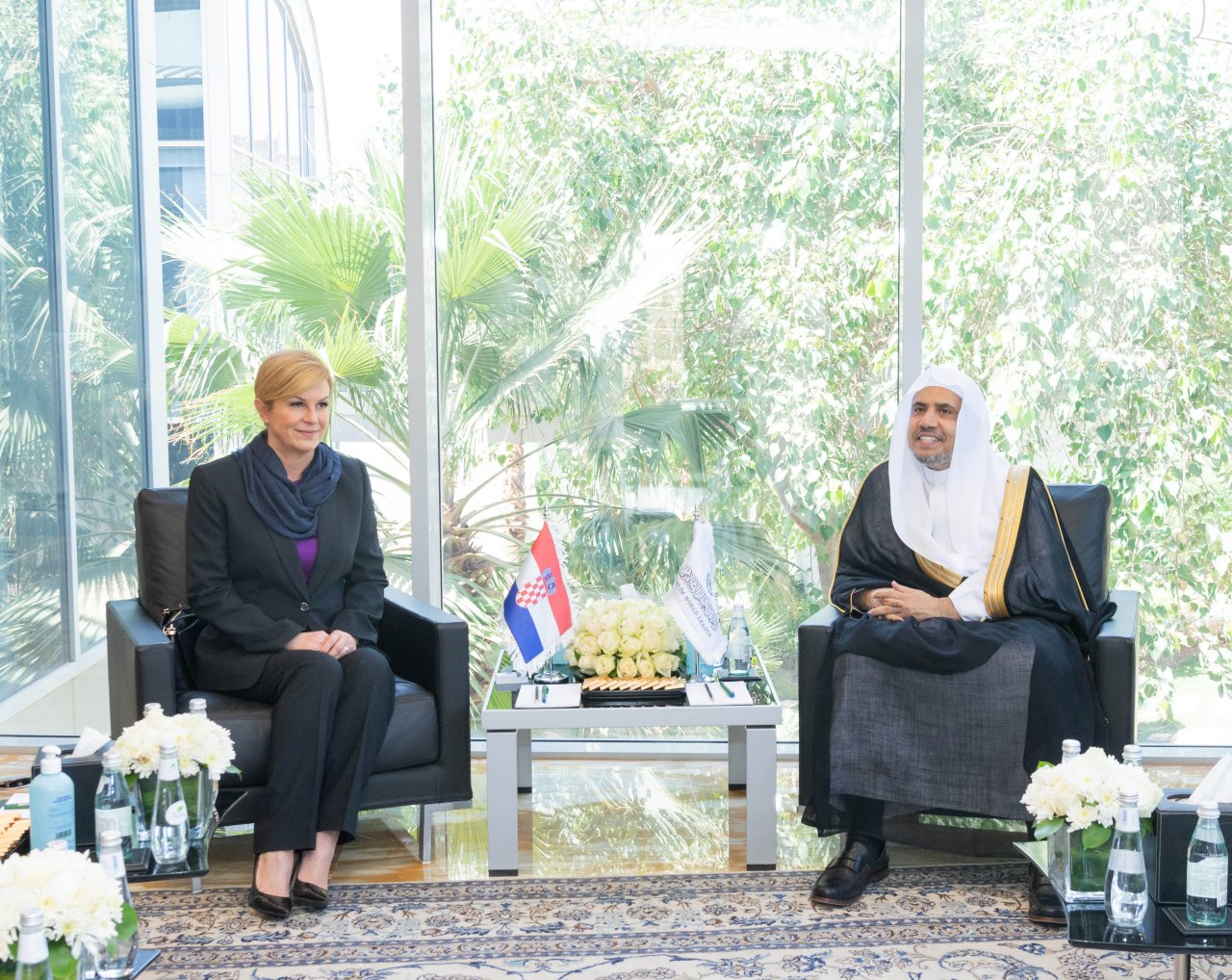 استقبل معالي الشيخ د. محمد العيسى في مكتبه بالرياض فخامة رئيسة كرواتيا السابقة والناشطة في مجال السلام العالمي السيدة كوليندا غرابار
