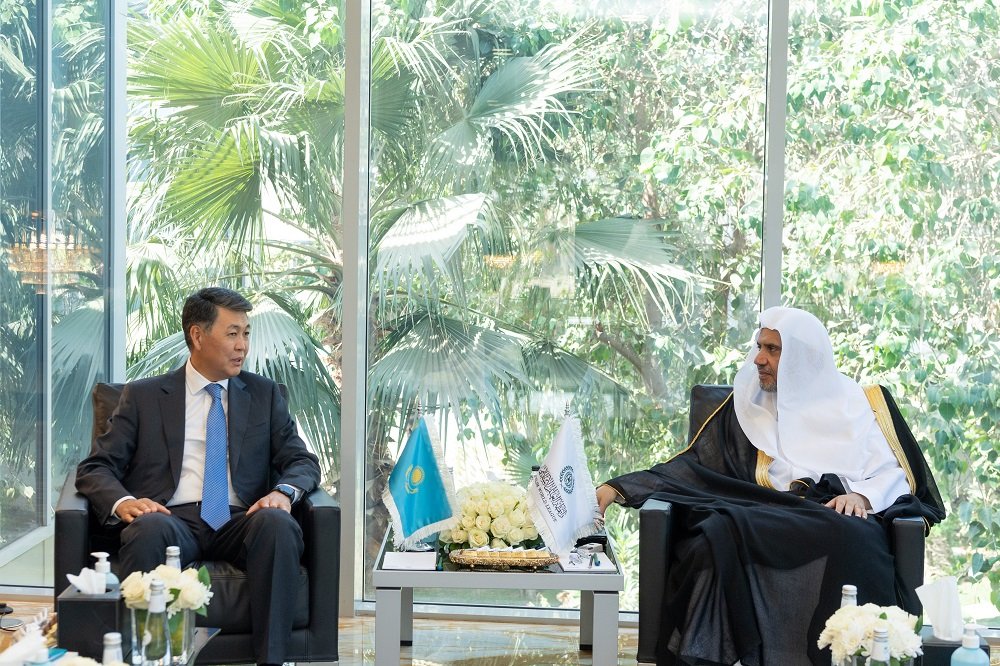سعادة سفير جمهورية كازاخستان لدى المملكة يسلم معالي الشيخ د. محمد العيسى الميدالية الفخرية لمؤتمر زعماء الأديان