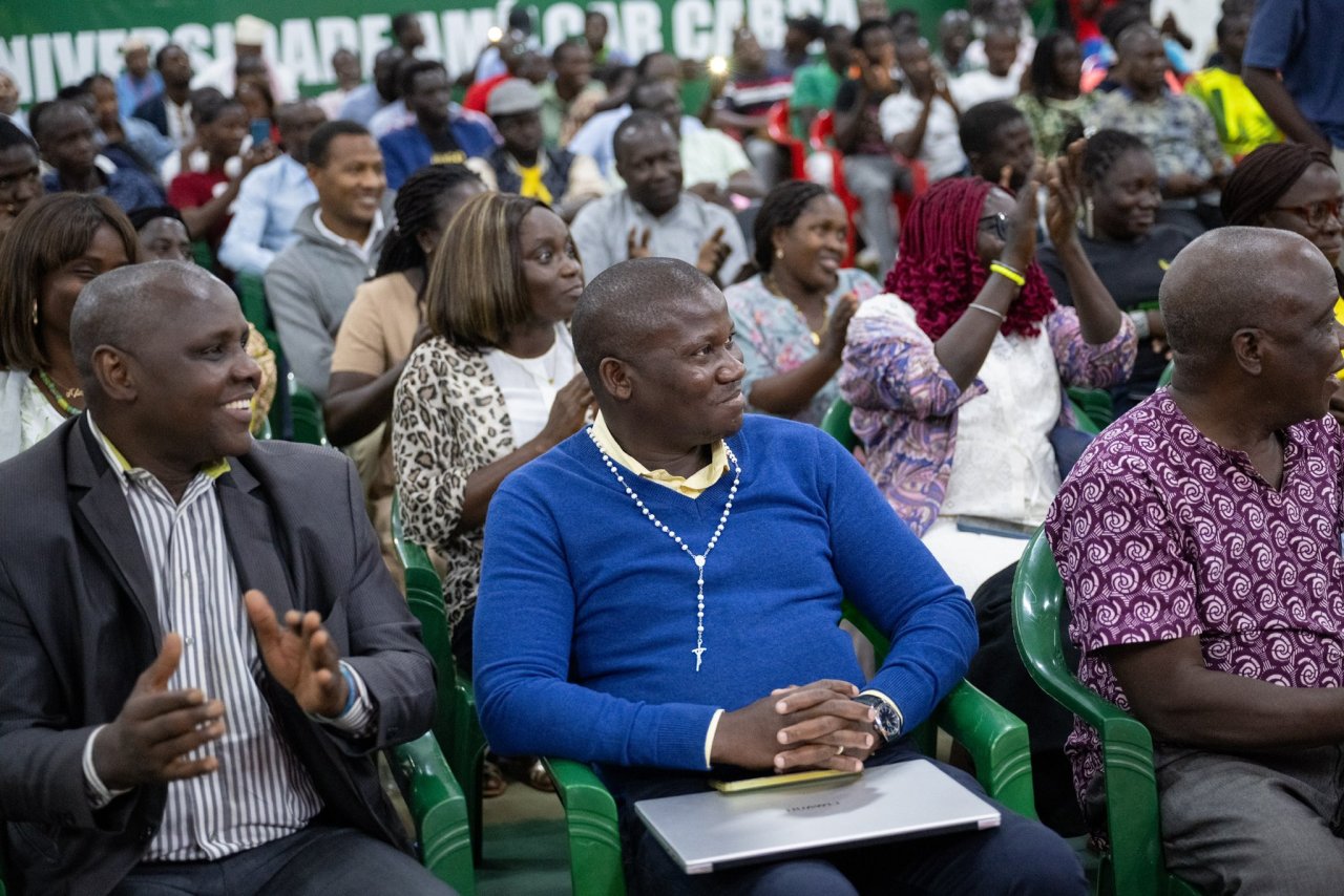 معالي الأمين العام، رئيس هيئة علماء المسلمين، فضيلة الشيخ د.محمد العيسى يُحاضر في جامعة غينيا بيساو حولَ قيم الإسلام مستعرضاً مضامين وثيقة مكة المكرمة ، بحضور عدد من الشخصيات الغينيّة؛ الإسلامية وغير الإسلامية، وأعضاء هيئة التدريس، وجمعٍ غفيرٍ من الطلاب والطالبات.