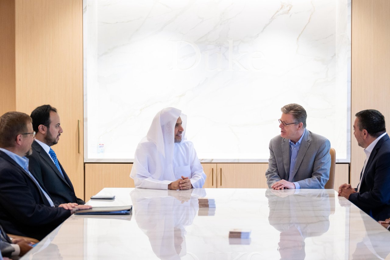 وجرى خلال اللقاء بحثُ آفاق تعزيز الشراكة القائمة بين رابطة العالم الإسلامي وجامعة ديوك.